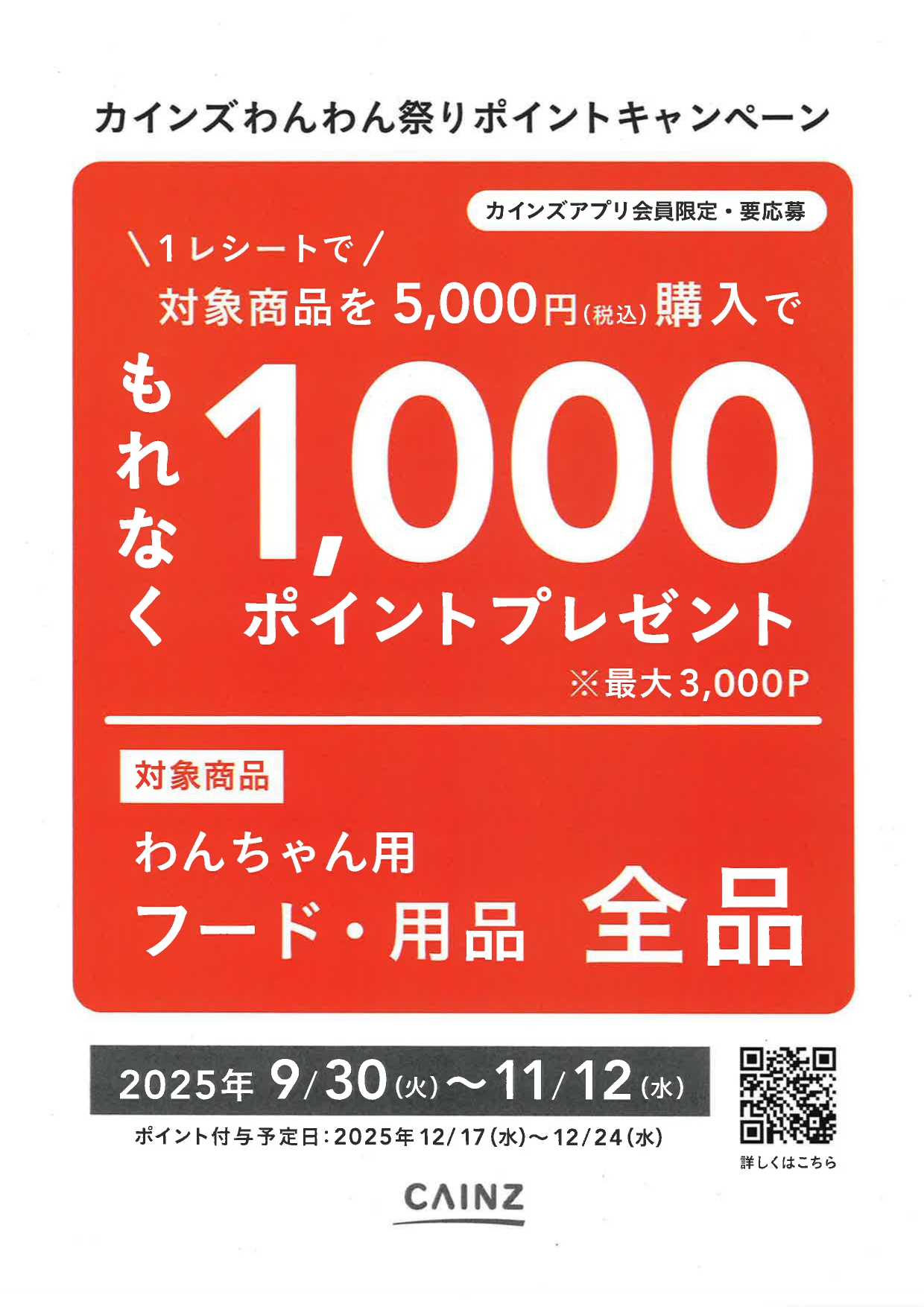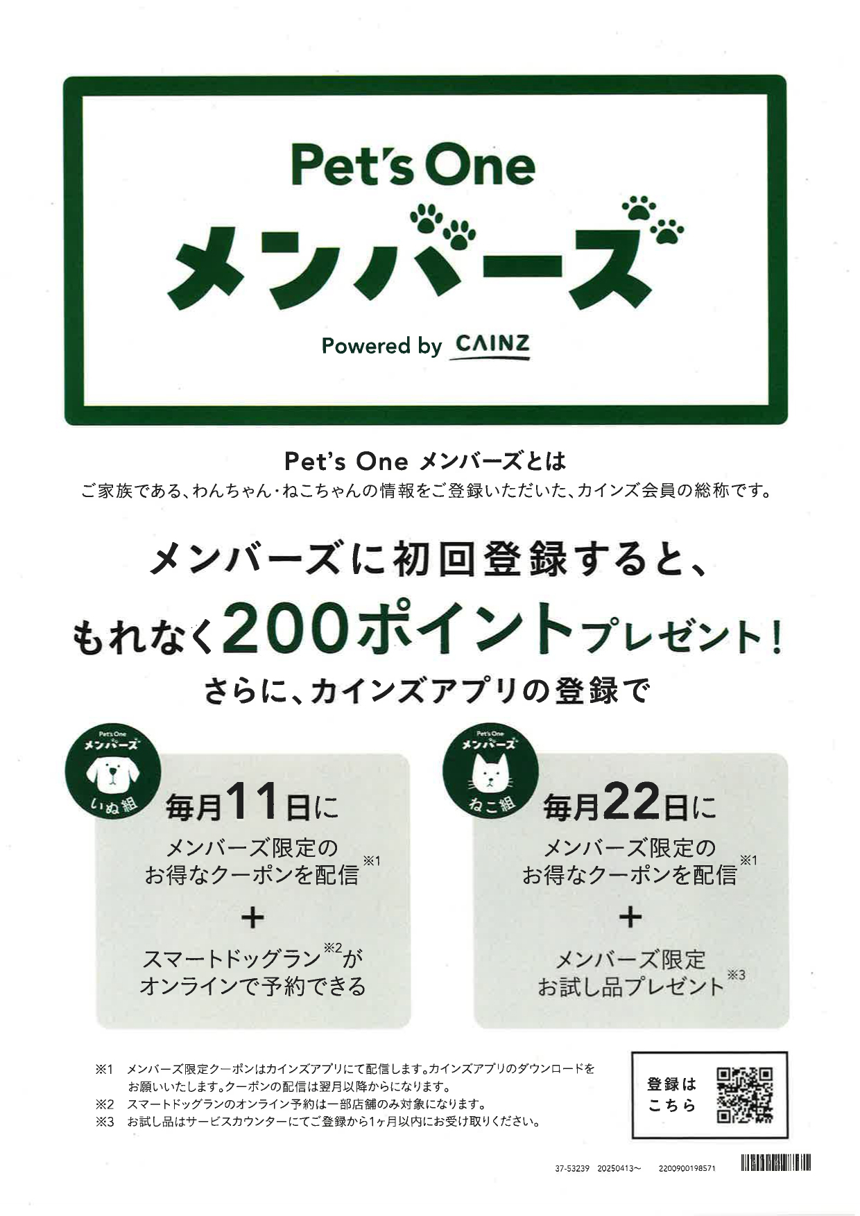 わんわん祭り期間中のお得なポイントキャンペーンとPet’s Oneメンバーズ登録についてのご案内です。