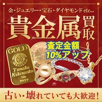 期間中に金・プラチナ製品・宝石ダイヤモンドジュエリー・をお持ちいただきますと査定金額に10%アップでお買取りいたします。