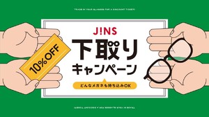 4/2(木)~4/22(水)の期間中、全国のJINS店舗に不要なメガネをお持ちいただくと新しくご購入のフレームが10%OFFに。