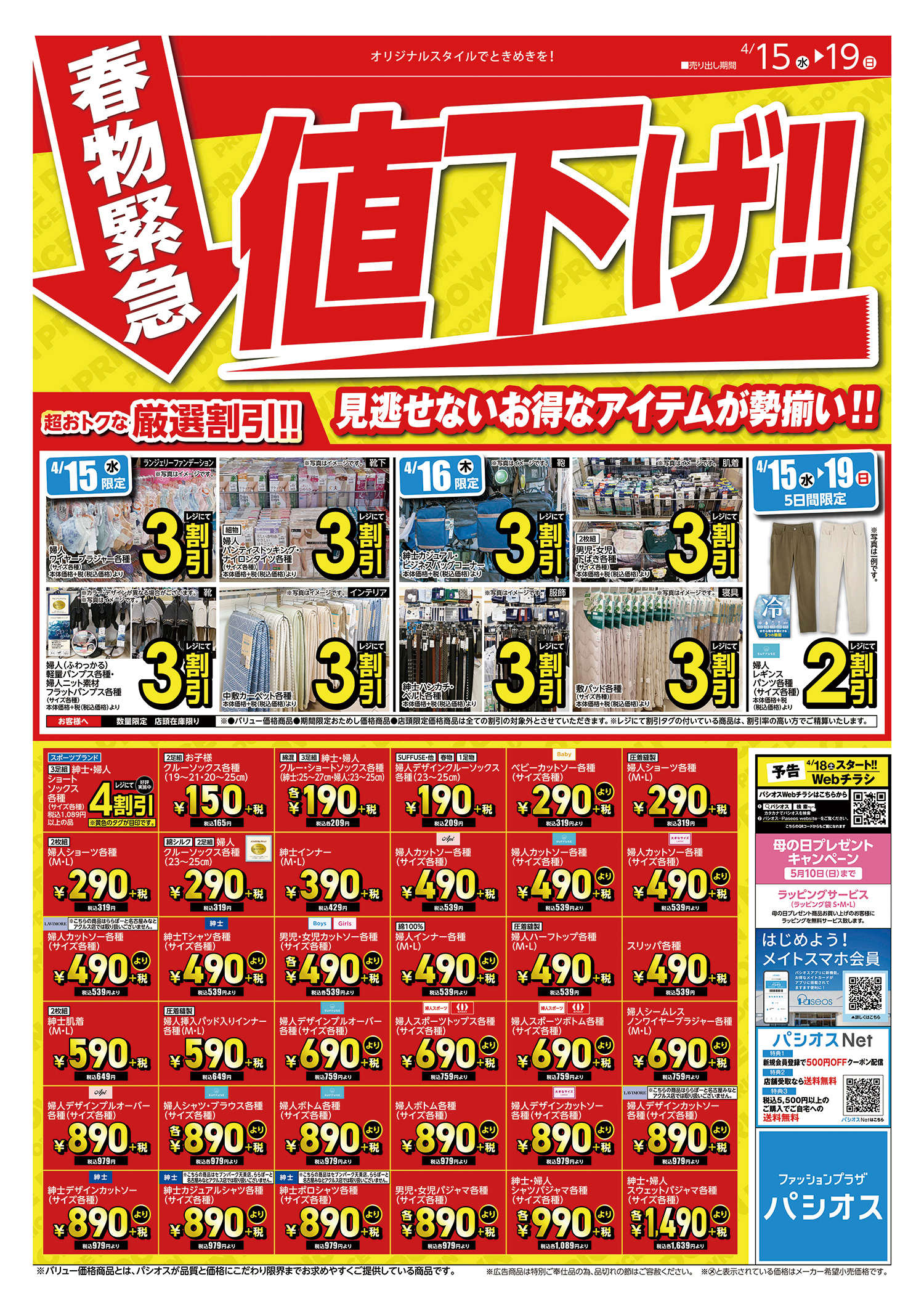 春物緊急!!値下げ!開催中のパシオスへご来店お待ちしてます!